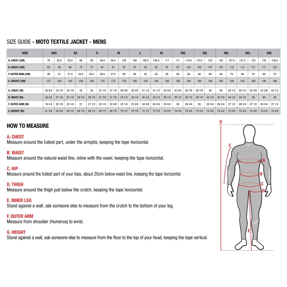 Størrelsesguide – Alpinestars Moto Textile Jacket (Herre)
