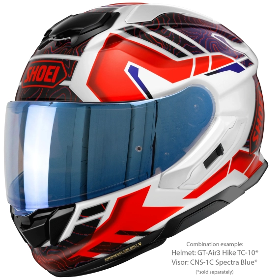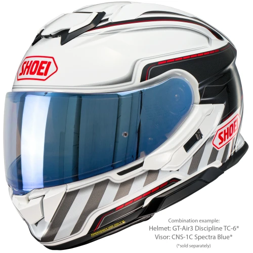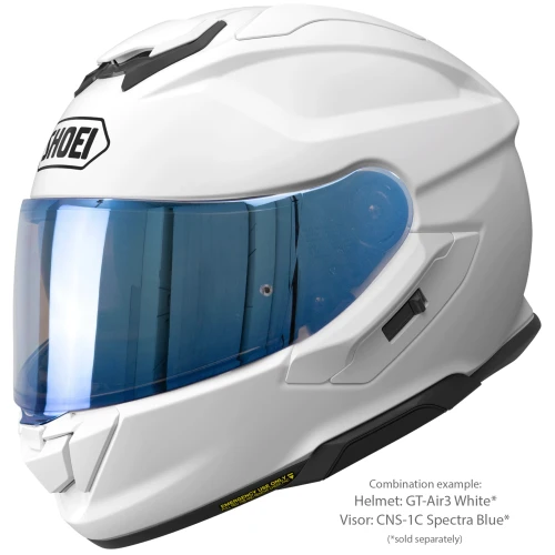 Shoei CNS-1C Spectra Blue er et originalt visir produsert spesielt for Shoei GT-Air 3. Den speilbelagte blå finishen reduserer lysinnslipp og bidrar til bedre komfort ved kjøring i sterkt dagslys.