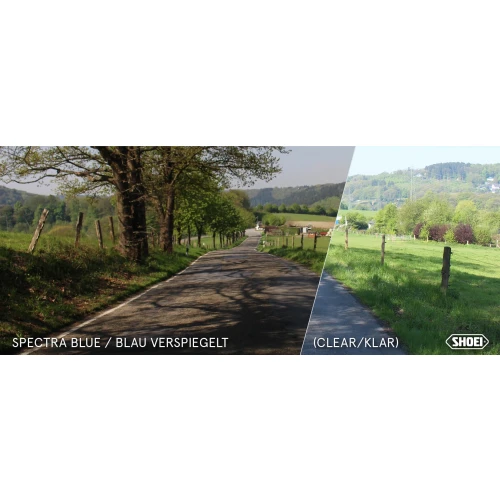 Shoei CNS-1C Spectra Blue er et originalt speilvisir utviklet for Shoei GT-Air 3. Visiret reduserer blending fra sollys og gir hjelmen et markant, sporty uttrykk samtidig som det opprettholder høy optisk klarhet.