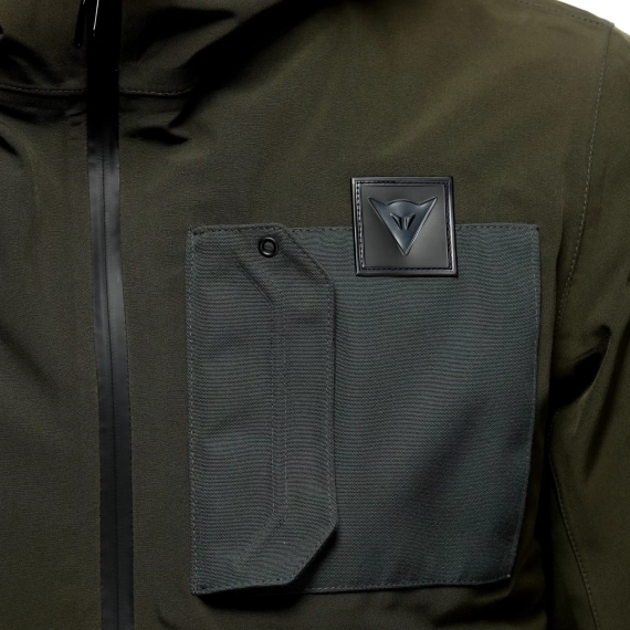 - Jakken har flere lommer, inkludert 2 vanntette ytterlommer, en innerlomme, og 2 lommer på det avtakbare termiske fôret for praktisk oppbevaring. I tillegg er det en pocket på armen og en pocket for G1 og G2 ryggbeskytter.