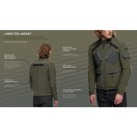 Dainese Lario Tex MC-jakke Herre – Lett Stretch og Ventilert Sommerjakke (Green)