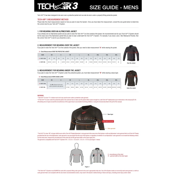 - Design og Kompatibilitet: Tech-Air® 3 kan bæres under alle Alpinestars’ Tech-Air® Ready jakker, samt andre lær- eller tekstiljakker som har tilstrekkelig plass til å romme airbaggen.