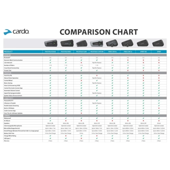 Dette Cardo Intercom-settet er det perfekte valget for deg som ønsker maksimal funksjonalitet, overlegne lydopplevelser og enkel kommunikasjon på motorsykkelturen. Enten du kjører alene eller i grupper, gir dette settet deg frihet, komfort og pålitelighet i alle situasjoner!