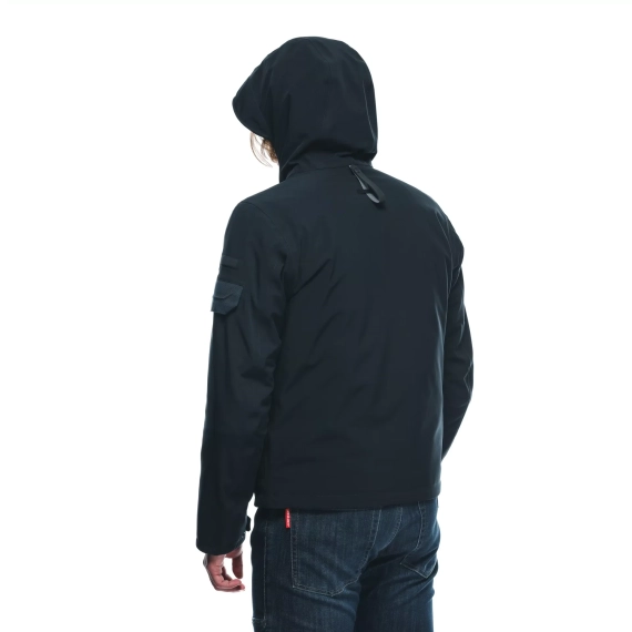 - Jakken har en vanntett hette med en intern sammenleggbar metallkjerne som gjør at du kan stramme den rundt ansiktet med bare én hånd. Dette gir beskyttelse mot værforholdene, takket være Uno Touch™ Hood Peak teknologi.