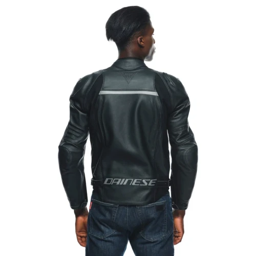 Konklusjon: Dainese Racing 4 Leather Jacket er designet for motorsyklister som krever både høy ytelse og beskyttelse, med en moderne og sporty stil. Med sitt avanserte beskyttelsessystem, inkludert CE-sertifiserte kompositthylser og utbyttbare aluminiumsplater, gir jakken overlegen sikkerhet i tilfelle et fall, samtidig som den holder deg komfortabel og kjølig under kjøreturen. Dette er et perfekt valg for de som ønsker det beste innen motorsykkelbeskyttelse uten å gå på kompromiss med stil og komfort.