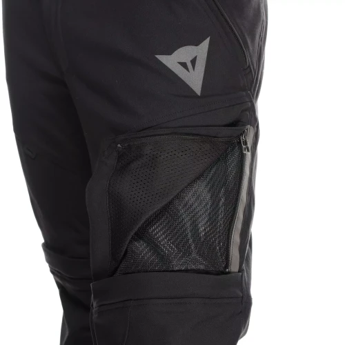 - Jacket-pants festesystem: Buksene kan lett festes til alle Dainese jakker via et spesifikt glidelåsfest, og har justeringsmuligheter på hoftene for en optimal passform.