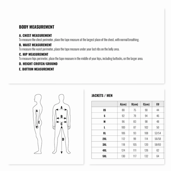 - Skreddersydd for herreform og størrelse for optimal komfort og bevegelighet.