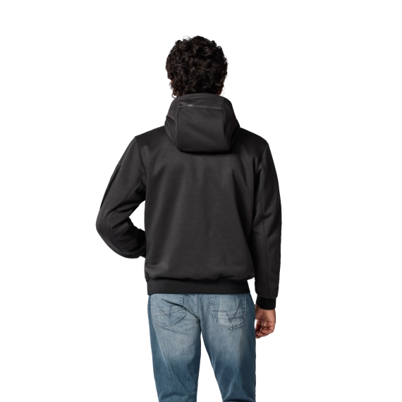 Den korte tilkoblingsglidelåsen og jeans loop gjør det enkelt å sikre hoodien til kjørebukse, noe som reduserer risiko for at plagget glir opp ved fall.