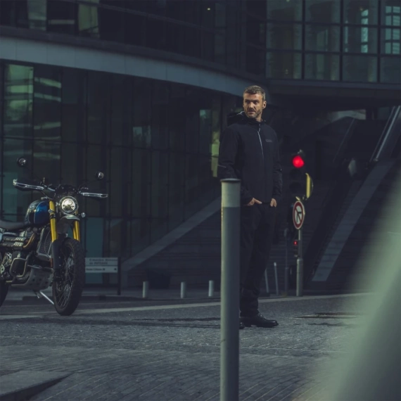 Lett, fleksibel og laget for hverdagskjøring, pendling og urban bruk. Den elastiske konstruksjonen gir god bevegelsesfrihet, og jakken kan enkelt utvides med varmeforing ved behov.